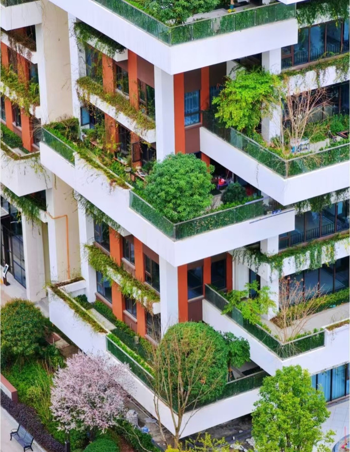第四代住宅鼓励业主在自家阳台上种植草木蔬菜,从外面看,整栋建筑就会像一个“垂直森林”,生态环保效果和高级感拉满。