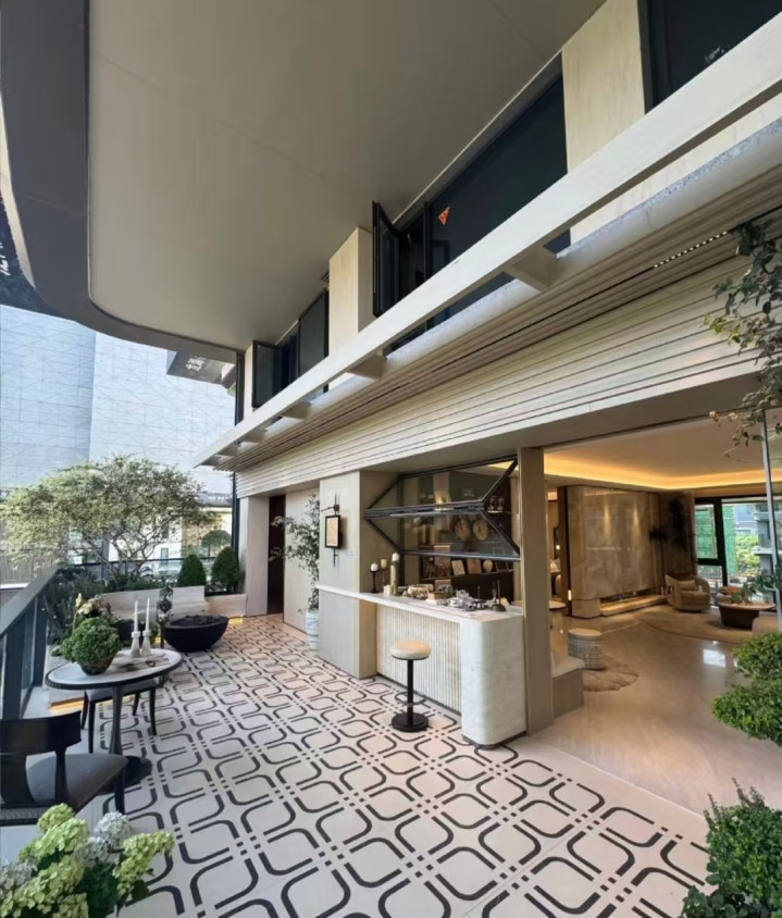 在第四代住宅中,每家都会有一个私有的超大阳台/露台,面积可以达到50㎡以上甚至上百平,也有挑高的开放式或者半开放式设计。
