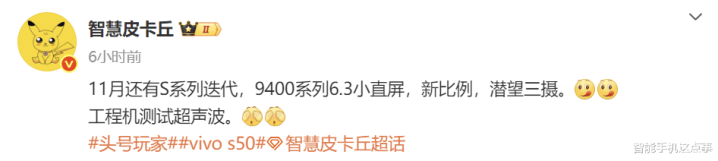 关键当网友询问“电池能上7K吗”时,博主回复道:“有惊喜”,这意味着vivo S50系列可能在电池容量或充电技术上有重大升级。