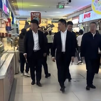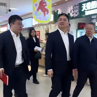 从照片来看,应该是在哈尔滨革新市场。视频中,刘强东大步流星,左右巡视,身边人则介绍着什么。