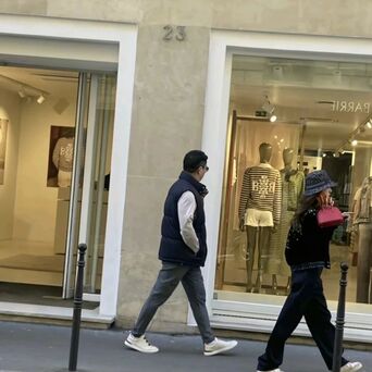 和逛街时轻松休闲的穿搭不同,他这次换上了一身很有大佬范的黑西装,腰杆挺得笔直。一行人马也基本都是西装革履,排面十足。